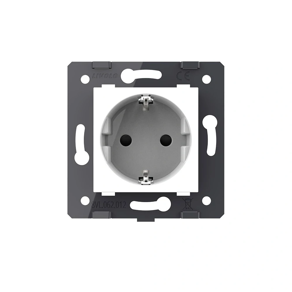 Biely modul zásuvky SCHUKO LIVOLO VL-C7-C1EU-11 určený pre pripojenie eletrických spotrebičov na území EU. Zásuvka SCHUKO nie je opatrená ochranným kolíkom a preto ju neodporúčame inštalovať na území SR. Pre použitie v tuzemsku prosím zvážte možnosť použitia zásuviek typu FR.