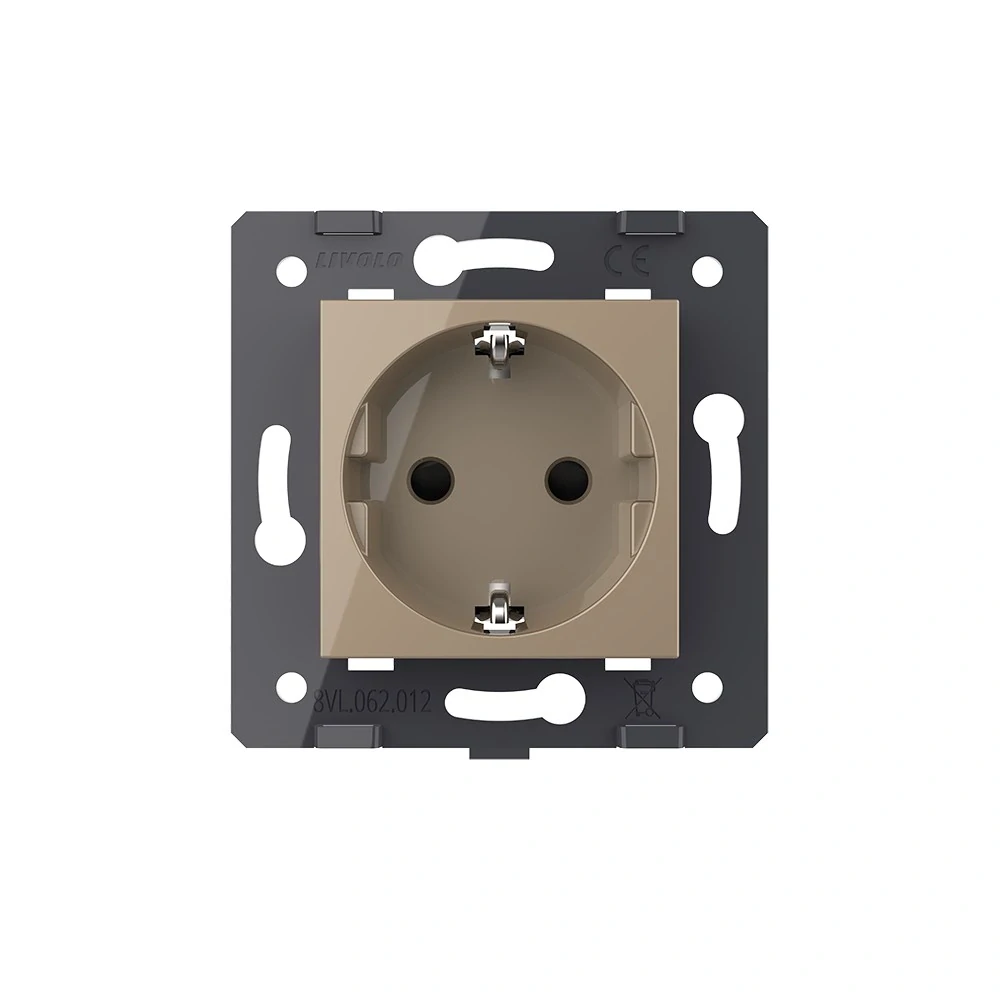 Zlatý modul zásuvky SCHUKO LIVOLO VL-C7-C1EU-13 určený pre pripojenie eletrických spotrebičov na území EU. Zásuvka SCHUKO nie je opatrená ochranným kolíkom a preto ju neodporúčame inštalovať na území SR. Pre použitie v tuzemsku prosím zvážte možnosť použitia zásuviek typu FR.