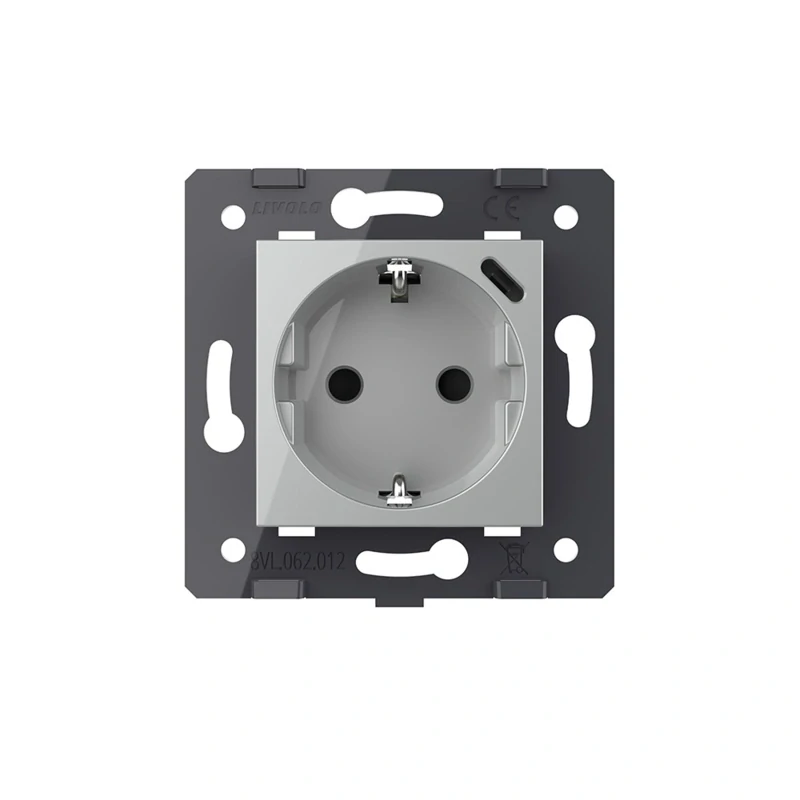 Strieborný modul zásuvky SCHUKO + USB-C LIVOLO VL-C7-C1EUC-15 určený pre pripojenie eletrických spotrebičov na území EU. Zásuvka SCHUKO nie je opatrená ochranným kolíkom a preto ju neodporúčame inštalovať na území SR. Pre použitie v tuzemsku prosím zvážte možnosť použitia zásuviek typu FR.